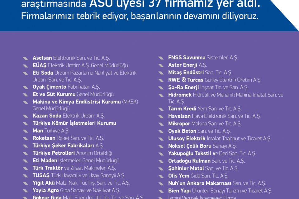 500 Büyük listesinde yer alan 37 ASO üyesi: