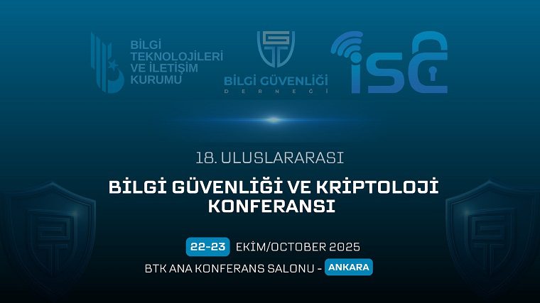 18. Uluslararası Bilgi Güvenliği ve Kriptoloji Konferansı (ISCTÜRKİYE 2025), 22-23 Ekim 2025 tarihlerinde Ankara’da Bilgi Teknolojileri ve İletişim Kurumu (BTK) Konferans Salonları’nda gerçekleştirilecek. Bilgi Güvenliği Derneği öncülüğünde, alanında yetkin üniversite, kamu ve sektör temsilcilerinin katkılarıyla, 18 yıldır kesintisiz olarak düzenlenen konferansın bu yılki ana teması ise “Siber Güvenlikte Gelecek Yaklaşımları ve Siber Güvenlik Düzenlemeleri” olarak belirlendi.