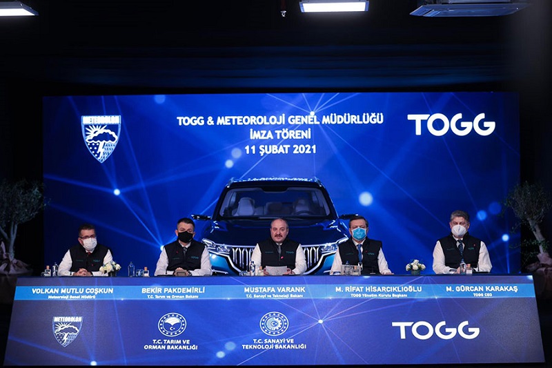 Sanayi ve Teknoloji Bakanlığı himayesinde, Tarım ve Orman Bakanlığı Meteoroloji Genel Müdürlüğü (MGM) ile Türkiye’nin Otomobili Girişim Grubu (TOGG) arasında, 11 Şubat tarihinde, ‘Meteorolojik Verilerin Paylaşımına İlişkin Protokol’ imzalandı. Anlaşma kapsamında; TOGG’un akıllı yaşam platformu olarak adlandırılan elektronik arabirimine, MGM tarafından sağlanacak gözlem, hava tahmini, kara yolları tahmin sistemi ve MeteoUyarı gibi ürünlerin entegrasyonu sağlanacak.