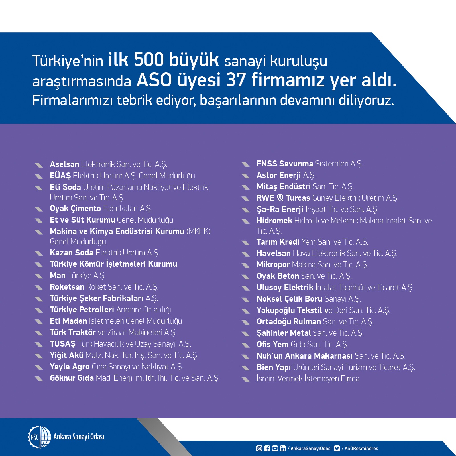 Devamını okuPandemi koşullarına rağmen üretmeye devam eden Ankaralı sanayiciler, 500 Büyük Sanayi Kuruluşu araştırmasında firma sayısını artırarak 37’ye çıkardı. ASO, İstanbul ve Ege Bölgesinden sonra en çok firmaya sahip […]