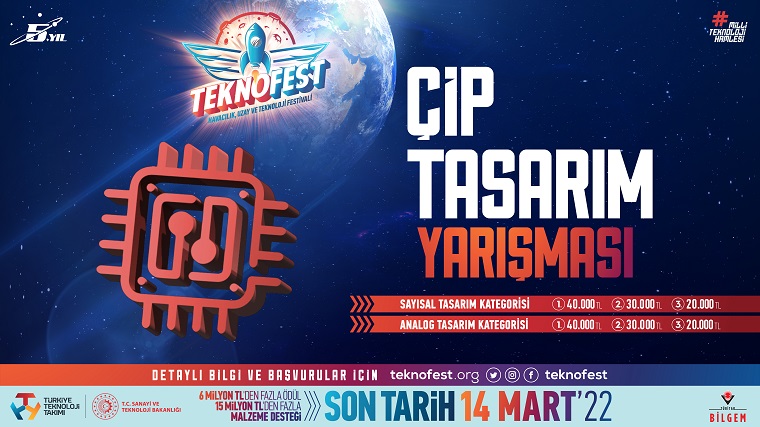 Havacılık, Uzay ve Teknoloji Festivali TEKNOFEST 5.yılında ilklere imza atmaya devam ediyor. Bu yıl ilk kez düzenlenen “Çip Tasarım Yarışması” festivalin yüksek ödüllü yarışmaları arasında yer alıyor. Her yıl yüzbinlerce gencin başvurduğu TEKNOFEST Teknoloji yarışmaları arasına yeni katılan Çip Tasarım Yarışması’nda amaç öğrencilerin mikro-elektronik teknolojilerine ilgilerini artırarak bu alandaki kabiliyetlerini geliştirmek olarak vurgulanıyor. TÜBİTAK BİLGEM yürütücülüğünde düzenlenen yarışmaya lisans ve yüksek lisans öğrencileri bireysel veya en fazla 4 kişilik takımlar halinde katılabiliyor.