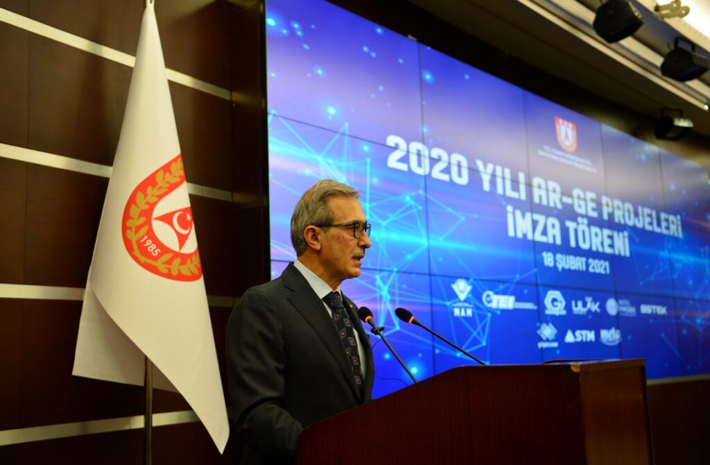 SSB’de düzenlenen imza töreni SSB Başkanı Prof. Dr. İsmail Demir, TÜBİTAK Başkanı Prof. Dr. Hasan Mandal, Milli Savunma Bakanlığı ve projelerde yer alan firmaların temsilcilerinin yer aldığı sınırlı sayıda katılımcıyla gerçekleştirildi. SSB Başkanı Demir, törende yaptığı konuşmada; günümüze kadar tamamlanmış ve devam eden toplam 104 Ar-Ge projesinde 3,5 Milyar TL’lik harcama yapıldığını, bu projeleri üniversiteler, firmalar, araştırma kurumları ve enstitülerle birlikte yürüttüklerini dile getirdi. Demir, “2002 yılında sadece 49 milyon dolar olan savunma sanayi Ar-Ge harcamaları 2019 yılında 34 kat artışla yaklaşık 1,7 milyar dolara çıktı. Bu rakam toplam sektör cirosunun yaklaşık yüzde 15’ine tekabül etmekte. Bu oranda sağlanan ve sağlanacak artışlar, sektörümüzün özgün ürün ve teknoloji geliştirmeye verdiği katkının bir göstergesi olmaktadır” değerlendirmesini yaparak konuşmasını şöyle sürdürdü: “Türkiye’nin ‘Küresel Güç Vizyonu’ hedeflerinin Ar-Ge ve teknolojiden geçtiğinin bilincindeyiz. Savunma sanayinde tam bağımsızlığın anahtarı kritik ve stratejik alanlarda tamamen yerli ve milliliğin sağlanmasıdır.”